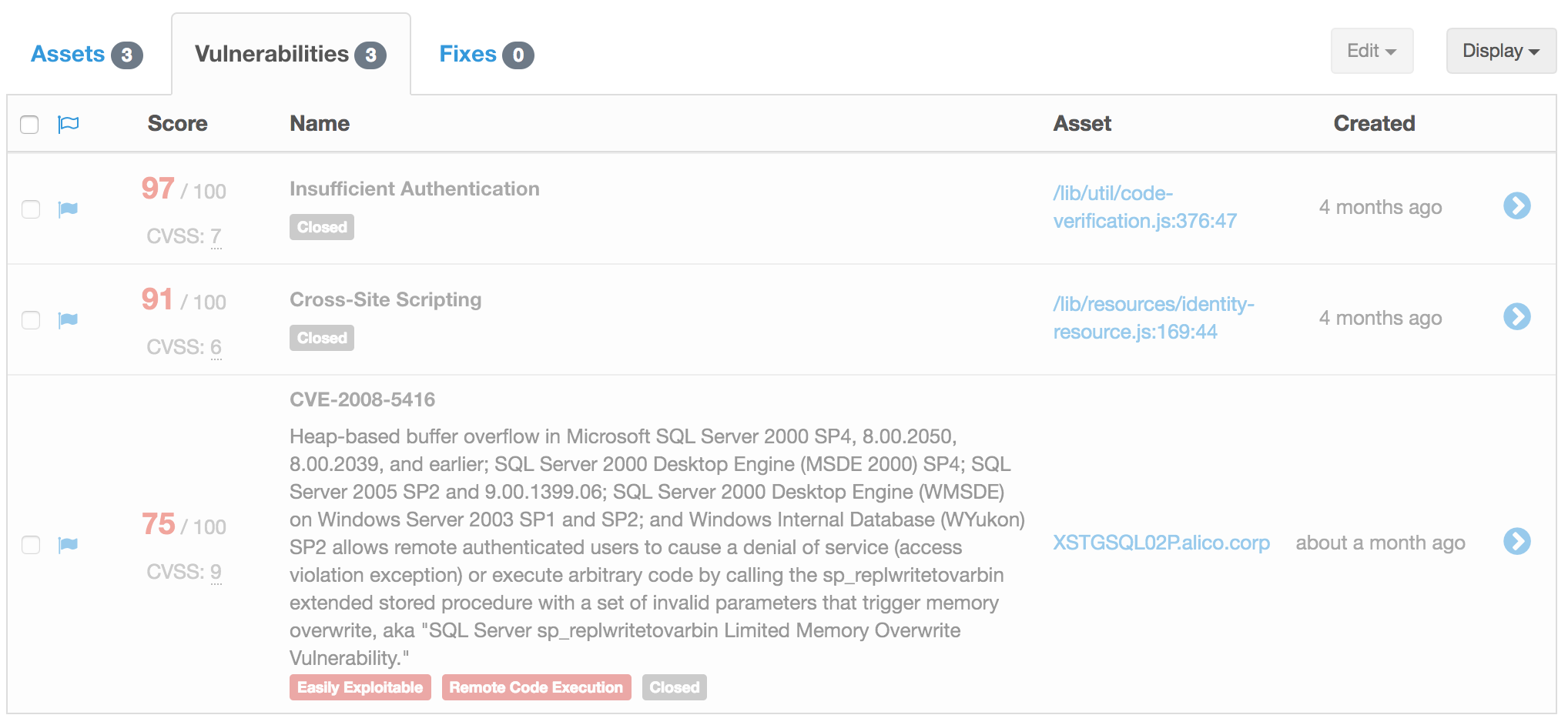 For these assets there are three vulnerabilities.