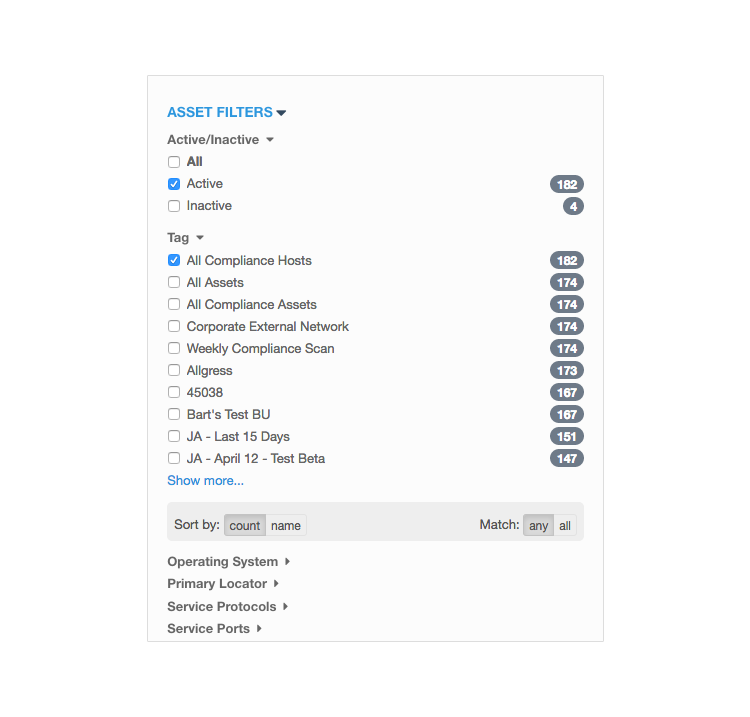Often organizations will create many filtered views that might be based on whether they are for example, active assets, tags, IP ranges, operating system type, geographical location or service ownership of assets or a combination.
